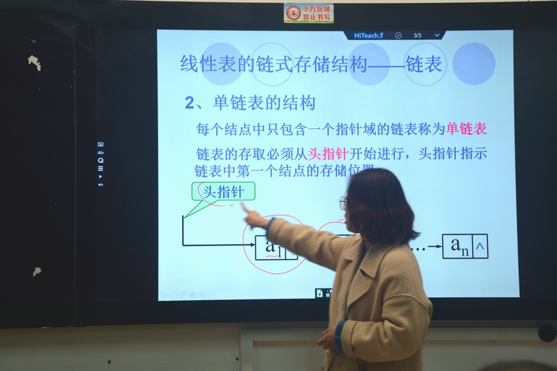 首先上场的是韩雪老师,她讲解了计算机科学与技术专业的核心课程《数据结构》的单链表的查找过程以及线性表的链式存储结构相关内容。接着,戴玥老师讲授了《定格动画》,用费纳奇镜的例子复习了视觉暂留的内容,详细介绍了定格动画的概念、特征以及定格动画与其他类型动画的辨析。颜无瑕老师的授课题目是《IP地址及其管理》。她以黑客因IP地址落入法网的真实事件导入课题,重点介绍了IP地址概念、分类、分配与管理。黄源老师则给同学们讲解了《Python开发技术》的字的运用方法,包括创建,删除,遍历,嵌套等。