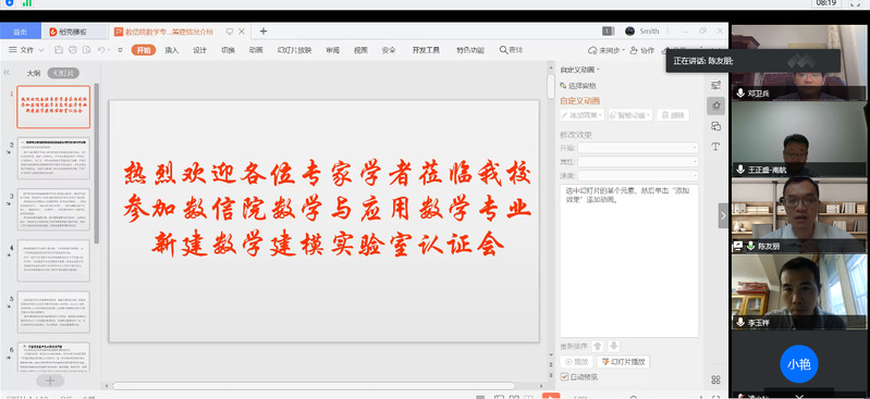 为了更好的培养学生的实践实训能力,提高学生数学建模实力,辅助学生完成毕业生设计、课外拓展项目等实验,搭建学生创新创业实践基地,taptap于6月1日19:00,数学与信息科学学院通过网络召开了数学与数学应用专业数学建模实验室“云论证”会,邀请了taptap党委常委、副院长陈克军教授,教务处处长杨枫教授,科研处处长王兵教授,南京大学数学系副主任邓卫兵教授,东南大学李玉祥教授,南京航空航天大学理学院副院长王正盛教授参加了论证会,会议由学院副院长张居晓主持。