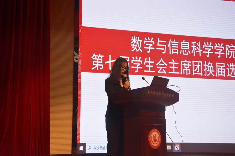 2020年11月9日晚,数学与信息科学学院在实训大楼报告厅召开学生会换届选举大会。数学与信息科学学院党总支书记李宏伟、院长胡作进、副院长张居晓,以及辅导员樊琬、李霞妹、林敏老师,院第六届院学生会全体成员、2020级全体新生参加了会议。