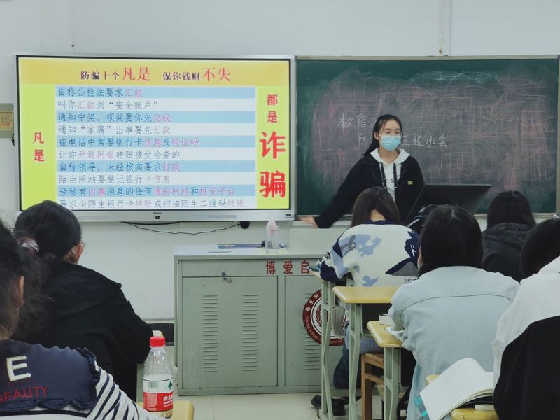 本次教育活动,以强化学生自我保护意识,维护自身权益,树立理性消费观,提高对金融诈骗和不良借贷的防范意识等为主要内容。全院2020级各班级先后召开了“防电信诈骗,拒绝校园贷”主题班会。班会通过课件、情景剧等形式,结合身边发生的案例,讲解了电信网络诈骗的形式、手段、特点,校园网贷的危害以及必要的防范技能。