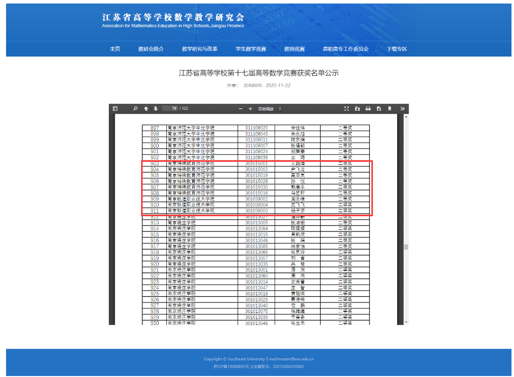 江苏省高等学校从1992年开始,经江苏省教育厅批准,举办高等数学竞赛活动,对加强高等学校课程教学过程管理,推动大学数学教学改革,增加课程难度,拓宽课程深度,打造一流课程,激发和提高学生学习的积极性,提高学生的综合素质都起到了促进作用。本次竞赛由江苏省高等学校高等数学竞赛组织委员会主办,江苏航运职业技术学院承办,参赛学校有东南大学等全省120所高校,14011名学生参加了比赛。