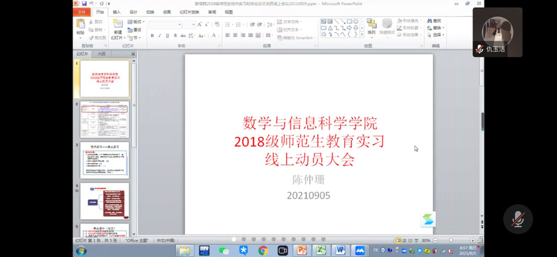 在疫情防控新形势下,为扎实推进数学与信息科学学院2018级各专业实习工作,9月5日、6日,数学与信息科学学院分别组织召开2018级教育技术学和数学与应用数学专业、计算机科学与技术专业“云实习”动员大会。