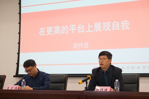 会议伊始,张国盛老师为各位新生介绍了学院党政班子成员、各系(教研室)主任、教学行政人员、辅导员等老师们的基本情况及其工作分工。会议第二项环节,由胡作进院长发言,胡院长代表全院师生对2021级新生的到来表示了热烈欢迎,并向新生介绍了taptap发展概况与教学成绩等基本情况,使新生对学院有了更深的了解,胡院长表示,不同专业应有不同的专业要求,当代大学生应站在更高的平台上展现自我。