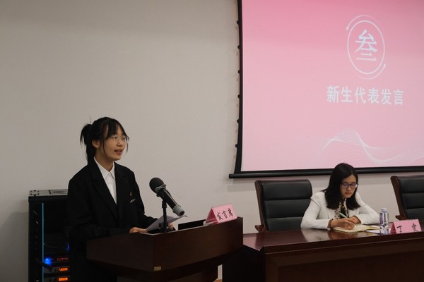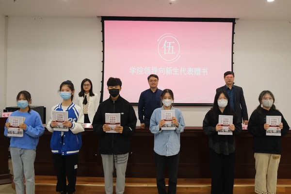 会上,新生代表王铭珠同学进行了发言,她表示在崭新的大学生活中,青年应不畏困难,一路向前,“以吾辈之青春,捍卫盛世之中华!”。随后,在张国盛老师的主持下,新生代表进行了拜师礼,参会老师予以回礼。会议第五项,参会领导向各班新生代表赠送书籍,希望2021级新生能够肩负起青年一代的责任与担当。