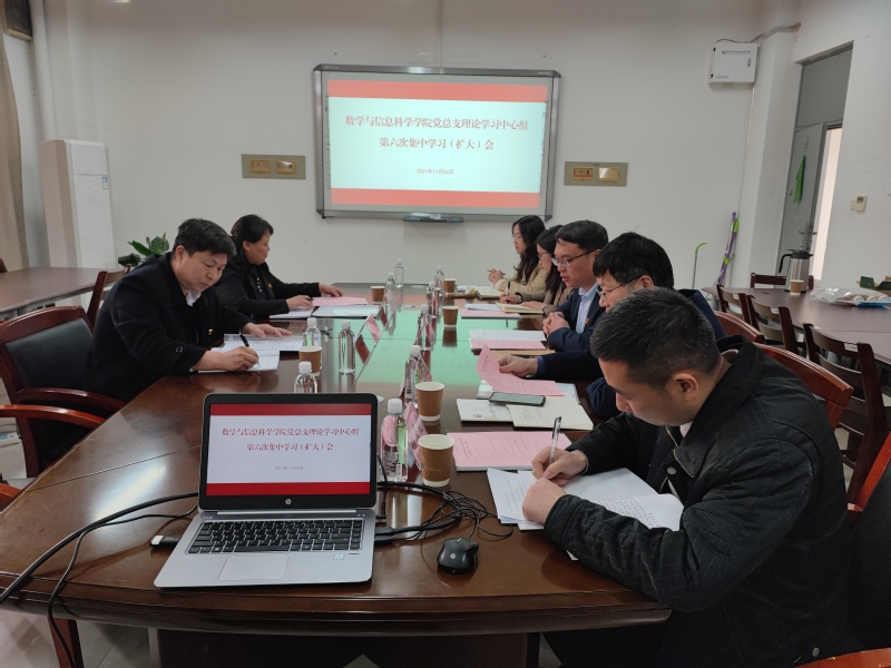 11月26日下午,数学与信息科学学院召开党总支理论学习中心组(扩大)学习会,专题学习党的十九届六中全会精神。校纪委副书记、纪委办公室主任王伟,纪委办公室综合科科长胡芳,作为校巡学旁听组成员全程莅临指导本次理论学习,学院党总支理论学习中心组成员及学院各教研室主任参加学习。会议由学院党总支书记李宏伟主持。