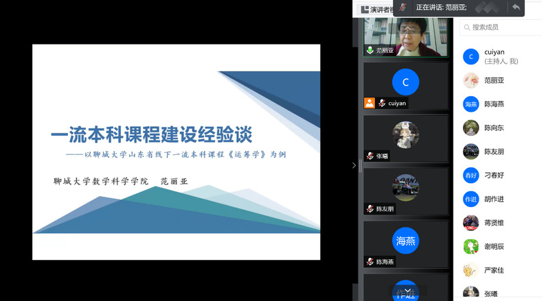 为推进taptap“一流本科课程”建设,12月27日下午,数学与信息科学学院邀请聊城大学taptap点点官方网站副院长范丽亚教授开展一流本科课程建设经验谈的线上分享会,院长胡作进教授主持分享会,学院全体教师参加了会议。