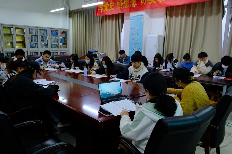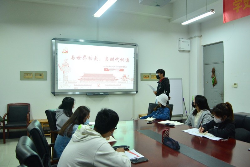 会上,张心怡同学领学了习近平总书记在中央党校中青年干部培训班上讲话的主要内容,带领大家学习了习近平总书记给苏翊鸣的回信,呼吁青年学生树立远大理想,勇担时代重任,提升能力,贡献社会。