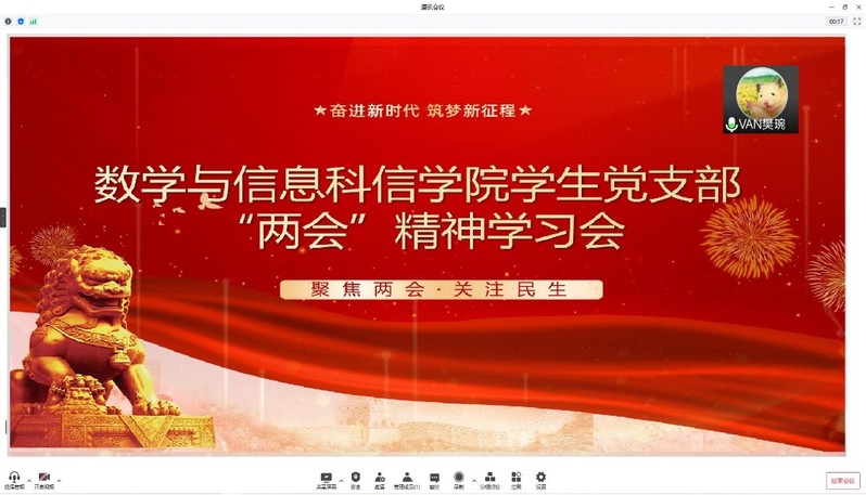 3月31日,数学与信息科学学院学生党支部召开党员大会,会议专题学习2022年政府工作报告和习近平总书记在全国两会期间发表的重要讲话。