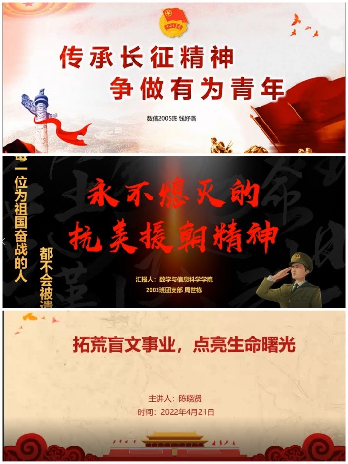 数学与信息科学学院团总支将进一步聚焦迎接和学习宣传贯彻党的二十大这一工作主线,结合庆祝建团100周年系列活动,注重发挥育人实效,为党的二十大胜利召开营造浓厚热烈氛围。(文/钱妤菡 图/各班团支书 编辑/樊琬 审核/李宏伟)