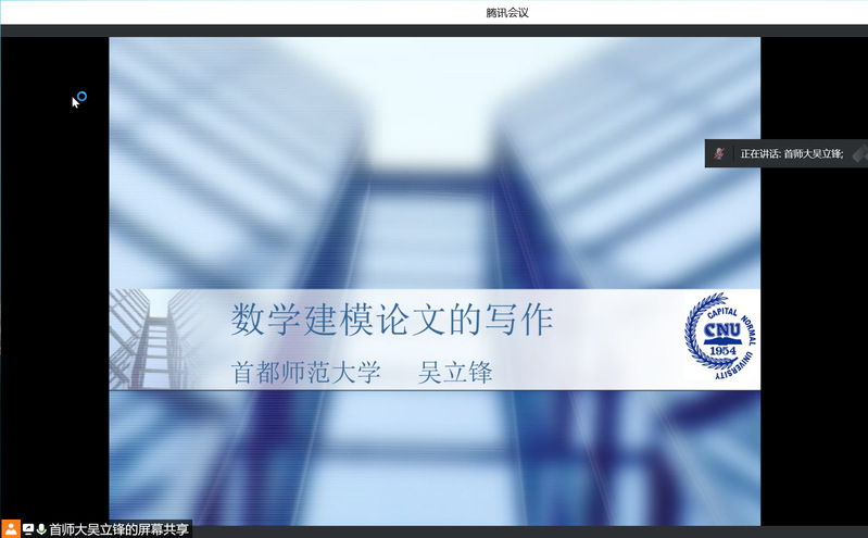 本次讲座中,吴教授从摘要、问题的分析、模型的假设等九个部分,生动形象地为大家讲述了如何写好数学建模论文。此外,吴教授结合““五一数学建模竞赛”的往届优秀论文,详细评析了一篇优秀数学建模论文所具备的要素和特点。
