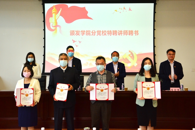 分党校特聘教师曹宗敏要求同学们要树立远大志向,勇担时代大任,在脚踏实地学好专业知识的同时,注重意志品格的锤炼,为实现中华民族伟大复兴奉献青春力量。随后学院对孙家文老师、曹宗敏老师、陈友朋老师和樊琬老师进行了学院分党校特聘讲师聘书的颁发。