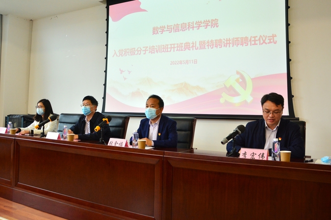 2022年5月11日下午,数学与信息科学学院2022年第一期分党校开班典礼在实验实训大楼301举行。校党委常委、组织部部长张金福,数学与信息科学学院党总支书记李宏伟、院长胡作进,党总支副书记丁雯以及分党校特聘讲师代表、学院全体辅导员和66名入党积极分子参加了开班典礼。会议由学院党总支书记李宏伟主持。