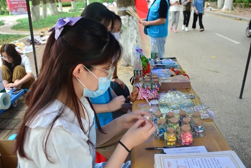 本次公益募捐售出的物品有一部分来自于taptap桔灯创“益”公益设计服务中心根据孤独症儿童绘画作品独家设计的产品,学院将售卖所得钱款全部捐出,用于睿泽障碍人士服务中心孤独症康复项目。一件件精美的手工艺品摆满桌面,琳琅满目,它们既是孤独症患者内心情感的表达,也是劳动价值的体现。