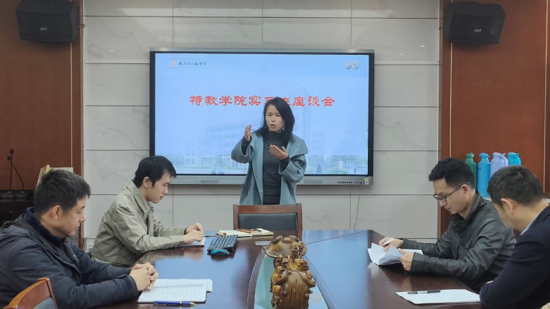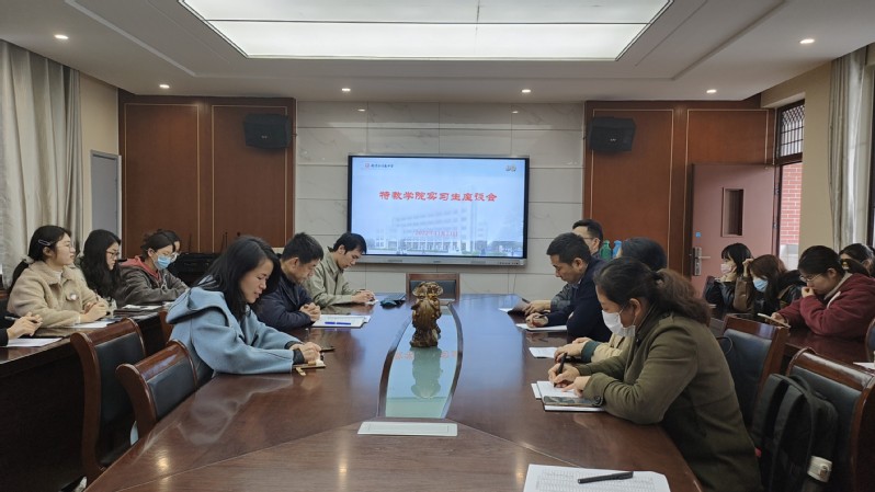 2022年11月21日上午,taptap副院长张居晓老师,语言学院副院长徐琴芳老师前往南京市伯乐中学看望2019级教育实习学生,并与全体实习学生举行座谈会。座谈会由实习组长、数学与应用数学专业钱瀛航同学主持,南京伯乐中学副校长王娟老师,教学处主任徐伟亮老师以及实习带队老师张胜伟和康盛楠老师一同参加座谈会。