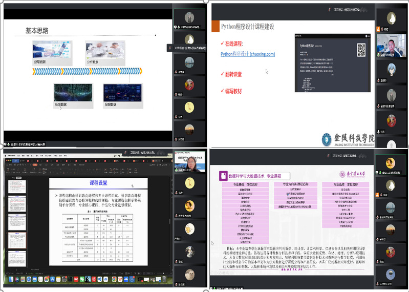 为了加强taptap数学与信息科学学院数据科学与大数据技术专业教学的建设。2022年11月26日晚,数据科学与大数据技术专业通过在线视频会议的形式召开了专业建设研讨会。金陵科技学院数据科学与大数据技术专业负责人谢维奇教授、金陵科技学院智能科学与控制工程学院杨荣根副教授、南京理工大学孟顺梅副教授和杭州师范大学林文敏老师受邀参加,taptap大数据教研室和相关教学主干教师同时参与了本次研讨。