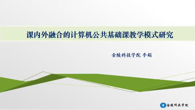 李娟老师做了题为《课内外融合的计算机公共基础课教学模式研究》的讲座,李主任结合金陵科技学院自身情况分别从课程性质、改革目标、改革重点、实施效果等方面做了分享。针对计算机公共课教学,她提出要提高学生自主学习能力,可结合各类竞赛、等级考试或认证等,以有效知识为主体,构建支持学生终生学习的知识基础和能力基础。