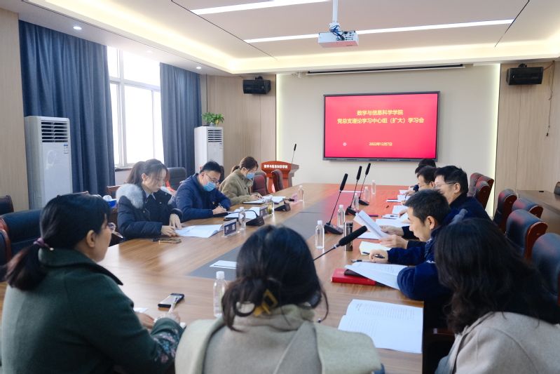 12月7日上午,数学与信息科学学院党总支召开理论学习中心组(扩大)集体学习会,深入学习党的二十大报告中关于“实施科教兴国战略,强化现代化建设人才支撑”的重要论述。学院党总支理论学习中心组成员、副处级以上领导干部、各系主任、各分党支部书记共同参加本次学习会。学习会由数学与信息科学学院党总支书记李贵希主持。学校党委常委、统战部部长、学工处处长、学校巡学旁听组组长高飞一行三人对学习活动进行了全程旁听和指导。