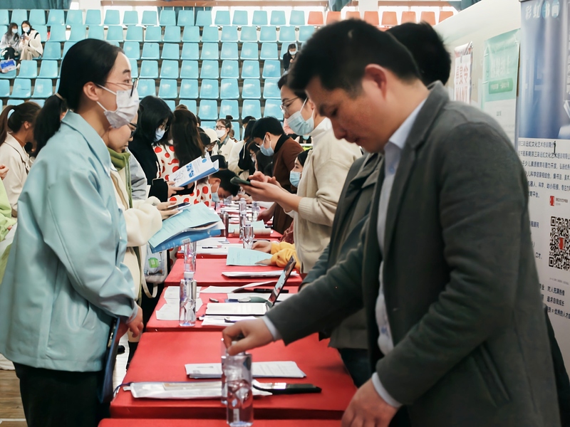 3月12日上午,南京特殊教育师范学院在体育馆举办招聘会,为应届毕业生提供就业岗位。