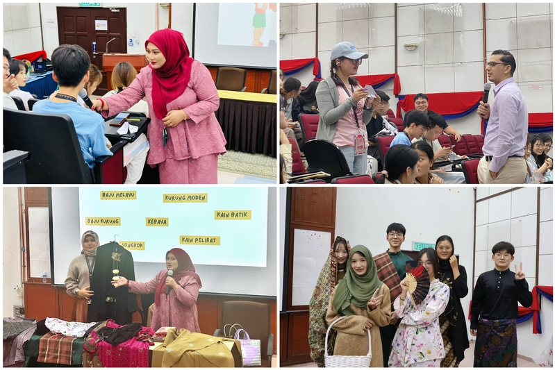 玛拉工艺大学为研学团师生们安排了丰富多彩的课程体验与文化交流活动。Nurul Liya Saffura Rostam教授向同学们介绍了马来西亚的传统语言、文化、习俗等,并邀请同学们试穿当地传统服饰,在轻松欢快的课堂氛围中,同学们亲身感受了马来西亚独特的风土人情和校园文化,体会到了多元文化的碰撞与融合之美;Shazan Khan Omar教授以计算机网络和人工智能为主题,带领同学们在人工智能软件的辅助下进行分组主题研讨,课堂中老师们着重强调了在线沟通、数字团队合作以及文件存储等现代学习技能的重要性,为学生们的未来学习与发展提供了宝贵的建议。研学团的同学们在沉浸式全英文的授课形式下获得了提升语言能力的机会,深刻领略了多语言多文化下的合作与沟通。