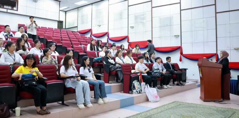 数学与信息科学学院研学团受到了玛拉工艺大学的热情接待。抵达当日下午,玛拉工艺大学为研学团举行了隆重的欢迎仪式。欢迎仪式由学生志愿者代表Megat Syahmi Waiz Bin Megat Khalid主持,他用流利的中文向远道而来的老师和同学们表示了最诚挚的欢迎。接着,语言研究学院副院长Nor Fazlin Mohd Ramli副教授发表讲话,她强调了国际学术和文化交流的重要性,指出通过研学交流可以增进双方学校彼此间的了解,为未来的合作打下坚实的基础。她还提到,玛拉工艺大学一直致力于推动国际教育合作,希望本次研学交流活动能成为两校合作的新起点。最后,本次研学活动负责人、语言研究学院教师代表Amir Lukman Abd Rahman介绍了玛拉工艺大学的发展历程、教育理念、未来规划和学校多元化的语言教学项目,同时他详细介绍了本次研学交流活动的行程安排,希望同学们能够以饱满的热情投入到本次研学活动当中,期待大家在研学活动中加强互动交流,提升专业素养。