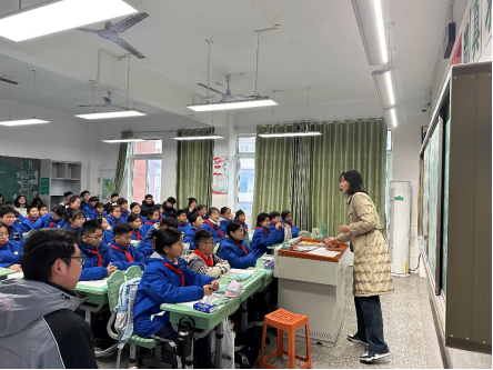 随后,学生们走进课堂,观摩了七年级数学课程《角的余角和补角》。通过两位老师的同课异构教学,学生们直观感受了不同教学风格的魅力,并深入思考如何因材施教,优化教学设计。课堂实践为学生们提供了宝贵的学习素材。