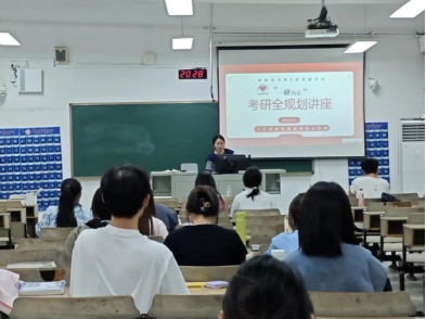 新航道集团资深讲师沈静凡老师率先登场,为同学们带来了一场干货满满的考研知识科普与时间规划讲座。沈老师凭借其深厚的专业知识和丰富的行业经验,从考研的时间节点、考试难度以及必备常识等多个维度展开讲解。同时,通过详细的数据分析,沈老师让同学们直观地了解了不同院校、不同专业的报考难度和录取趋势,为同学们的择校决策提供了有力参考。沈老师的讲解深入浅出、条理清晰,同学们纷纷认真记录,不时点头表示认同。