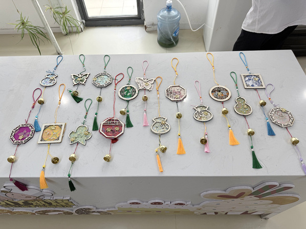 活动筹备阶段,支部党员带领志愿者们提前抵达指定地点做好各项活动准备。活动中,支部党员和志愿者们分工协作、相互指导,主动照应身边同伴,耐心细致地讲解制作步骤,从串珠穿线到装饰固定,手把手指导每一个细节。障碍人士们积极投入创作,用色彩与线条勾勒心意,将独特的想法融入风铃之中——有的搭配明亮色块展现活力,有的点缀小巧装饰传递温柔,每一件作品都是他们内心世界的生动写照。过程中,支部党员与学员们不时交流互动,笑声与细碎的讨论声交织,温暖的氛围萦绕全场。